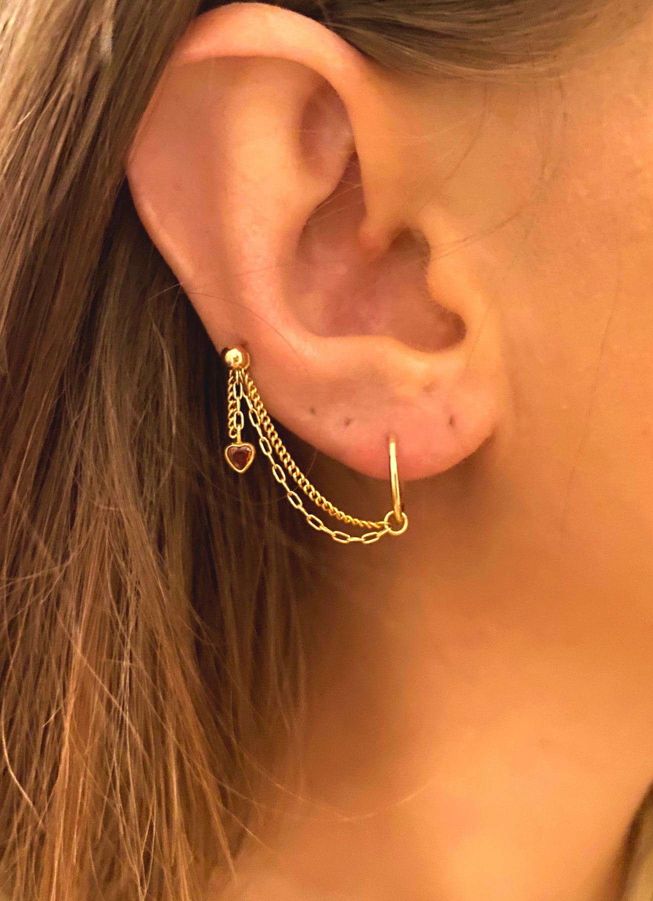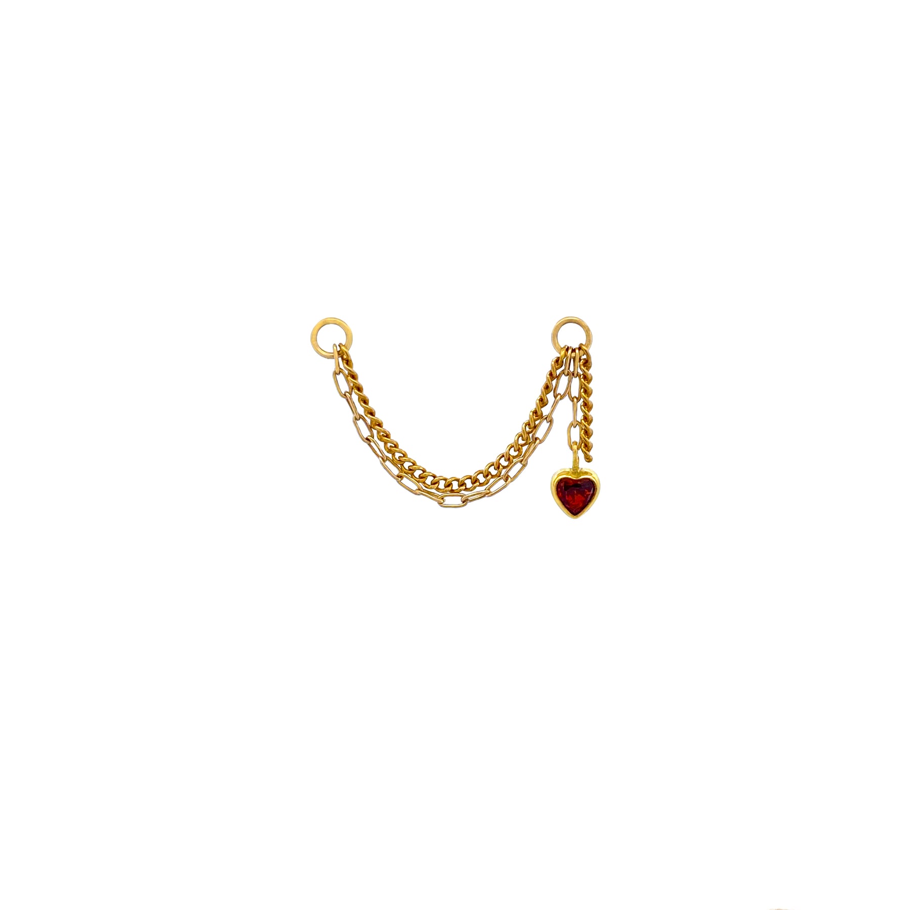 This Garnet Heart Chain is designed to slide effortlessly onto studs and hoops.