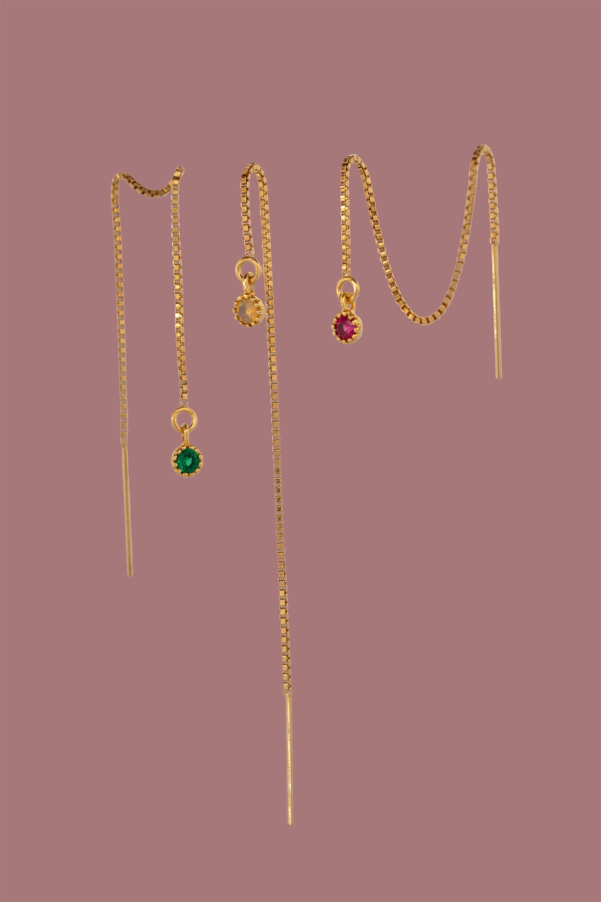 De threader kan op verschillende lengtes gedragen worden: trek hem op de gewenste lengte door je oor, of draag hem door meerdere gaatjes voor een speels effect.