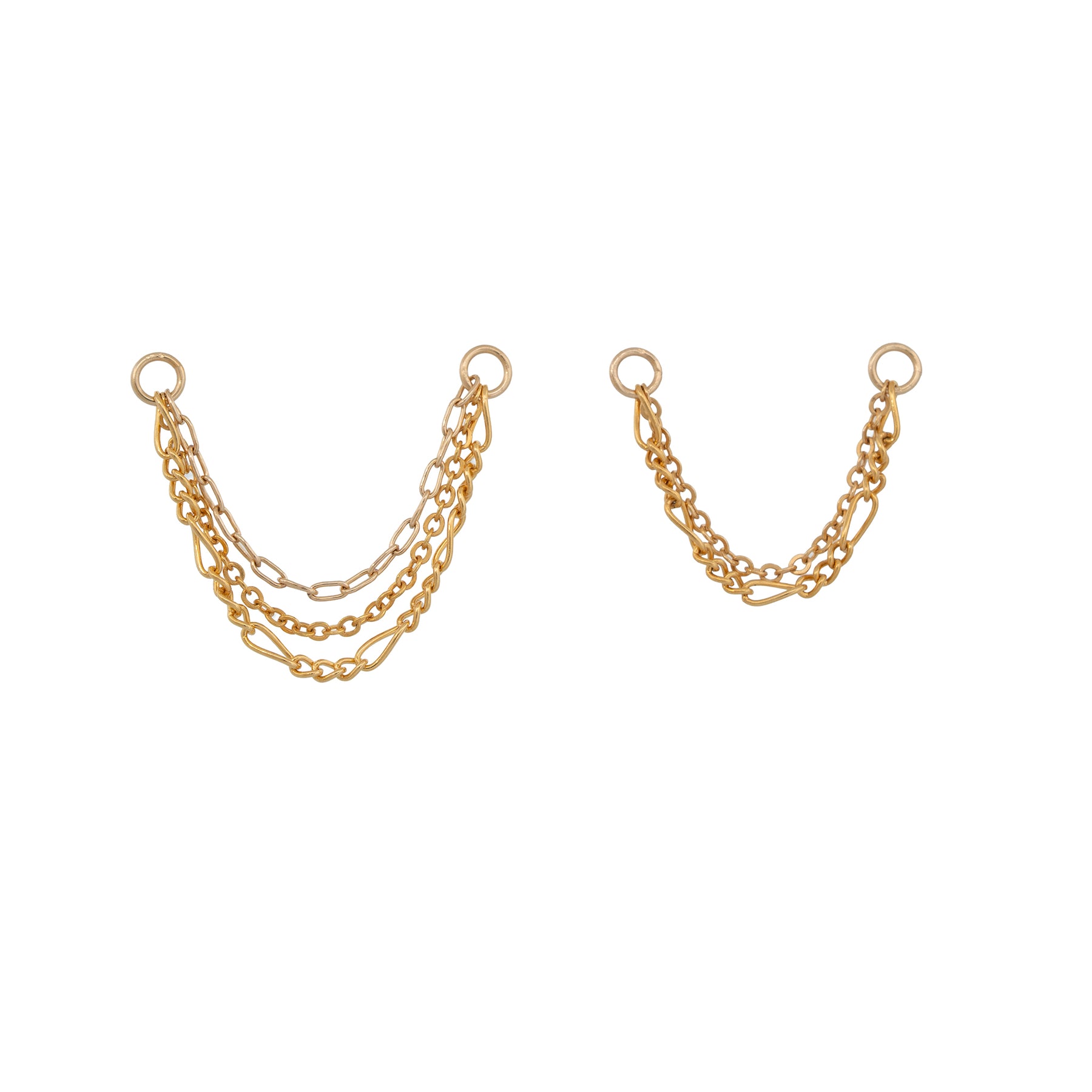 - Choose between: A double chain (2 chains) or a triple chain (3 chains) for a more layered effect- Effortlessly slides onto hoops & studs- Jump ring size: 2mm diameter- Material: 14K Gold Filled- Tarnish-resistant & highly durable - Available with:3mm Gold Filled Ball Studs12mm Gold Filled Hoops